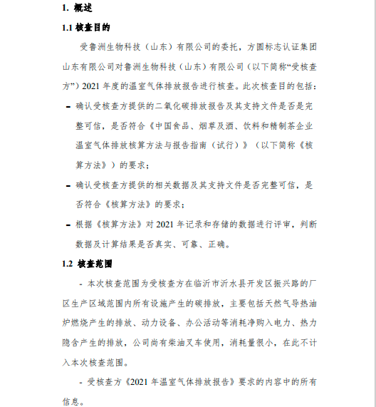 魯洲生物科技(山東)有限公司2021年度溫室氣體排放核查報告